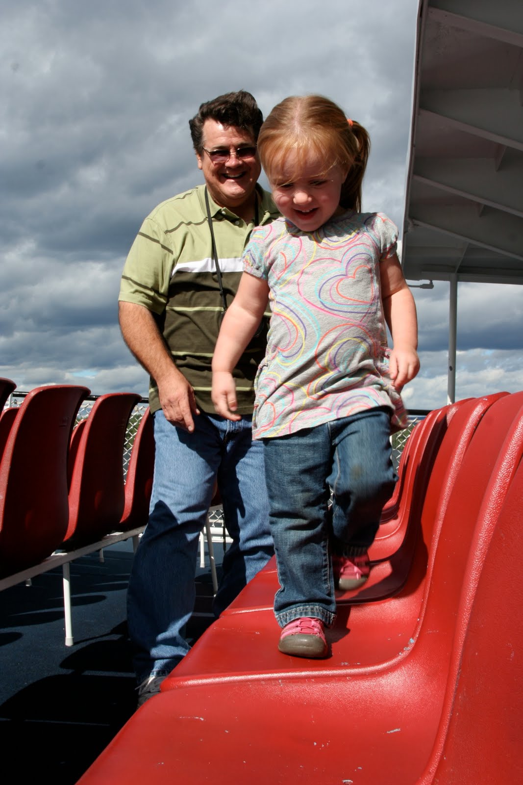 Ok, it was more like 2.5 hours around the lake, but you get the idea! :) Grammy and PawPaw had some extra tickets to the Mt Washington cruise so we hopped on board along with the current Miss Lakes Region and her mom and had a great time! The kids loved exploring the boat. It was a beautiful day, albeit a bit windy and cold!